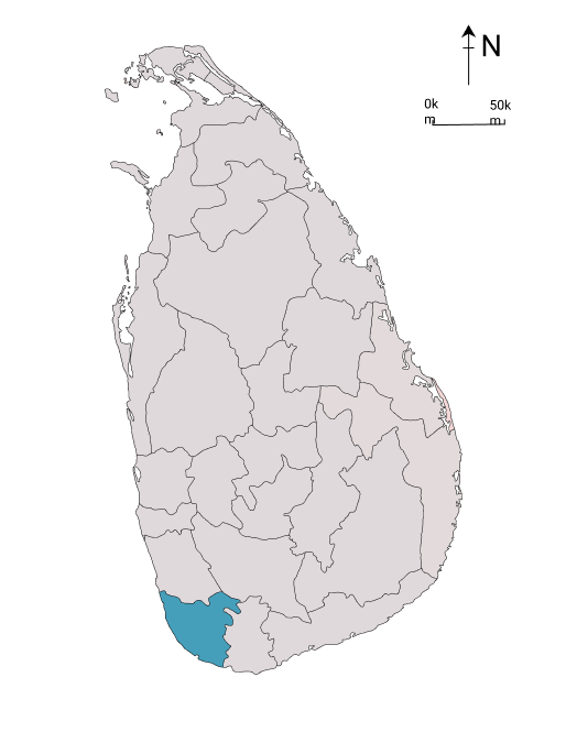 Ambalangoda is a coastal town located in Galle District, Southern Province of Sri Lanka. Governed by Ambalangoda Urban Council, the town is famous for its ancient demon masks and devil dancers and it is situated approximately 107 kilometers south of Colombo